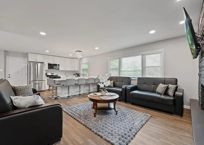 About a 10-minute drive from this Willowbrook villa guests will find St James at Sag Bridge Catholic Church, while the recreational retreat "Harvester Park" is approximately 15 minutes' drive away. The holiday home offers sports enthusiasts to discover Darien Sportsplex Arena, located 2.3 miles away.